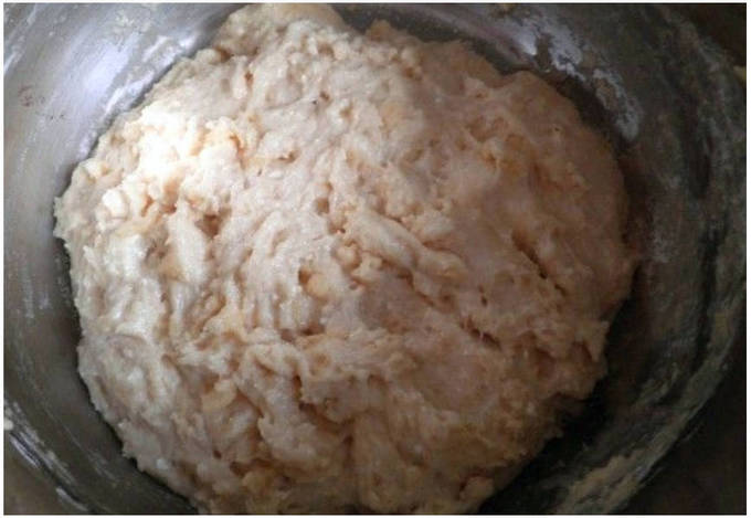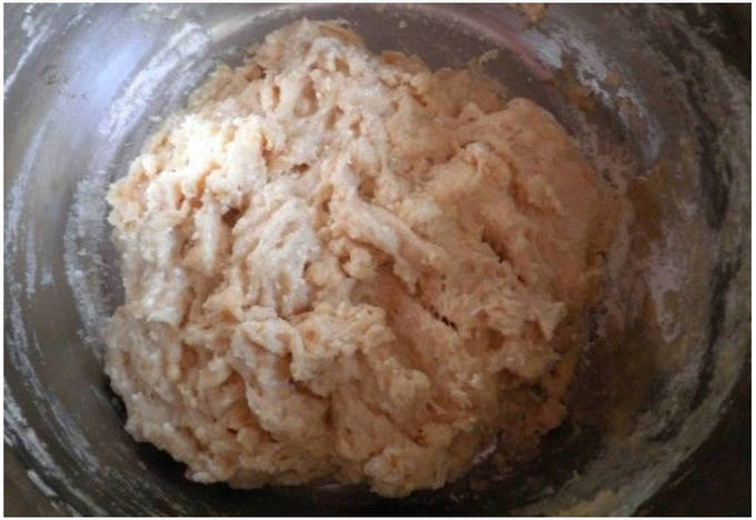 Шаг 6. Перемешиваем заготовку и после тщательно вымешием ее руками в течение 6-8 минут до полной однородности и эластичности.