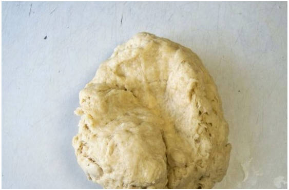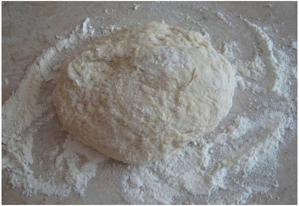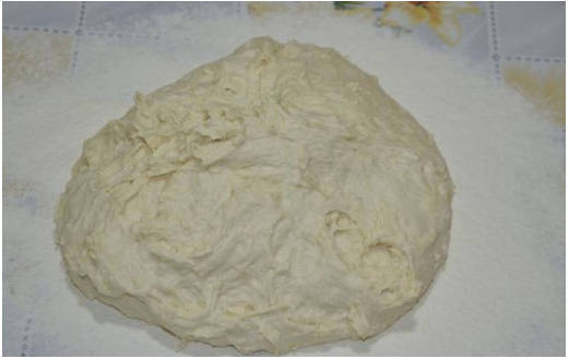 Шаг 6. После выкладываем ком на рабочую поверхность. Продолжаем тщательно вымешивать до эластичности.