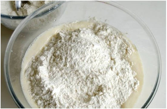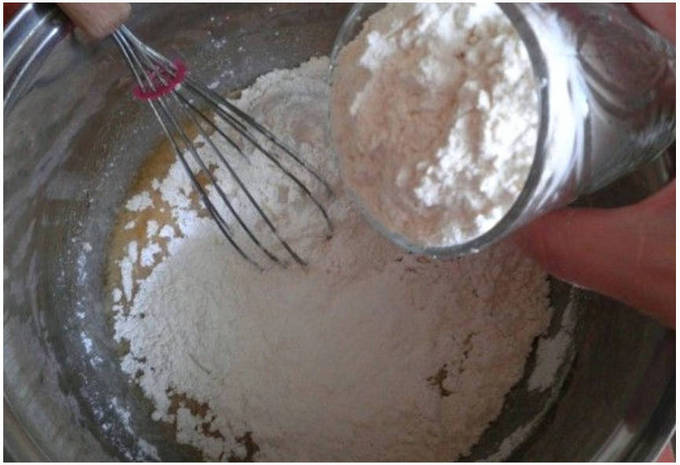 Шаг 5. Постепенно просеиваем сюда муку.