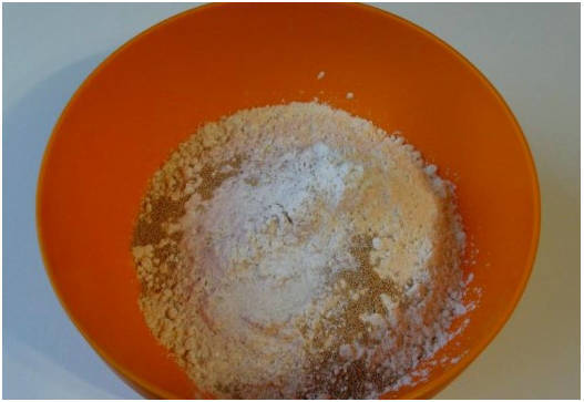 Шаг 1. В глубокую миску просеиваем муку, перемешиваем ее с сахаром, солью и сухими дрожжами.