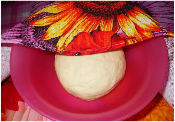 Шаг 6. Полученный ком прикрываем полотенцем или пищевой пленкой. Убираем в теплое место на один час.