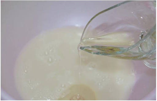 Шаг 4. Выливаем указанное количество растительного масла. Перемешиваем до однородности.