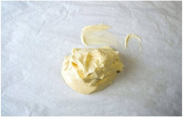 Шаг 7. Оставшееся размягченное масло кладем на пергамент.