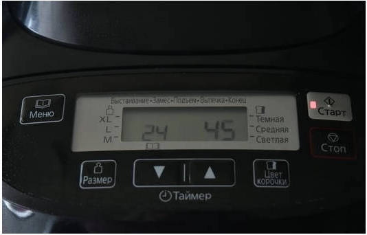 Шаг 5. Включаем программу для замеса теста. В хлебопечке Панасоник она находится под номером 24 (уточните номер программы своей модели).