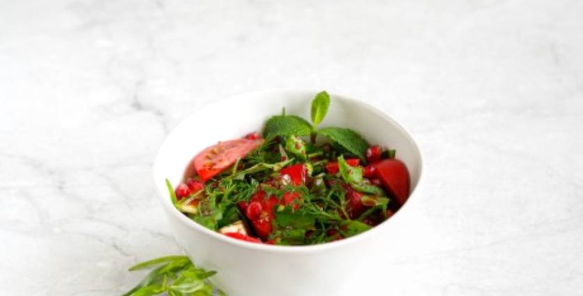 Грузинский салат с помидорами Броцеули в своей основе имеет очень необычные травы, которые в процессе приготовления настолько гармонично вплетаются в закуску своими ароматами и вкусами, что, кажется, нет ничего лишнего. Заправку для салата готовим из гранатового соуса, а зернышки используем для украшения. Салат с грузинским шармом обязательно должен приготовить каждый! Пробуйте, не пожалеете!