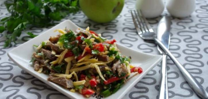 Салат «Восточный» с говядиной – это превосходная версия классического салата. Главным ингредиентом становится отварная говядина. Нежное мясо, свежие овощи и пряная заправка – эти все компоненты в комплексе и создают сытную и вкусную закуску. Обязательно готовьте, даже не сомневайтесь, а салатик следует сохранить в рецептурнике сытных и вкусных закусок.