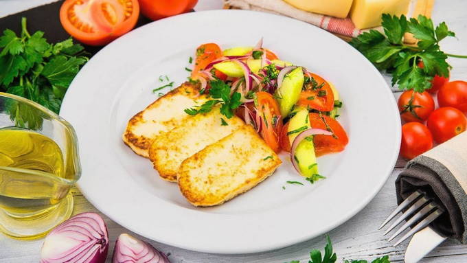 Жареный сулугуни отлично сочетается с различными гарнирами, такими как свежие овощи, салаты, гречка или лаваш.